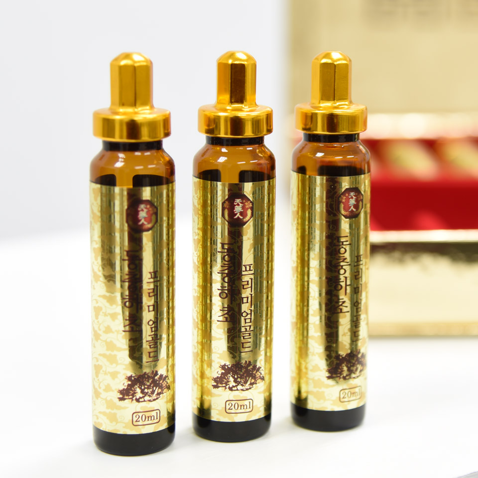 Bên cạnh đông trùng hạ thảo nguyên con, đông trùng hạ thảo ở dạng ống, dạng bột…cũng được chiết xuất từ đông trùng hạ thảo nguyên chất, dễ sử dụng, bảo quản và lưu trữ, được nhiều người tin dùng. Sản phẩm đông trùng hạ thảo dạng ống được đóng trong ống thủy tin an toàn, tiện dụng là sản phẩm nên có trong tủ thuốc của mỗi gia đình (lưu ý: sản phẩm không phải là thuốc) VHPGinseng giới thiệu và phân phối sản phẩm đông trùng hạ thảo dạng ống Hàn Quốc, nhập khẩu chính hãng từ công ty Korea Ginseng Bio – Science Co., LTD, được sản xuất trên dây chuyền công nghệ y học hiện đại, áp dụng kỹ thuật nhiệt độ thấp, tạo ra các sản phẩm với thành phần dưỡng chất dễ hấp thu vào cơ thể con người. Bảo quản dễ dàng và sử dụng đơn giản không cần qua bất kỳ công đoạn nào khác.