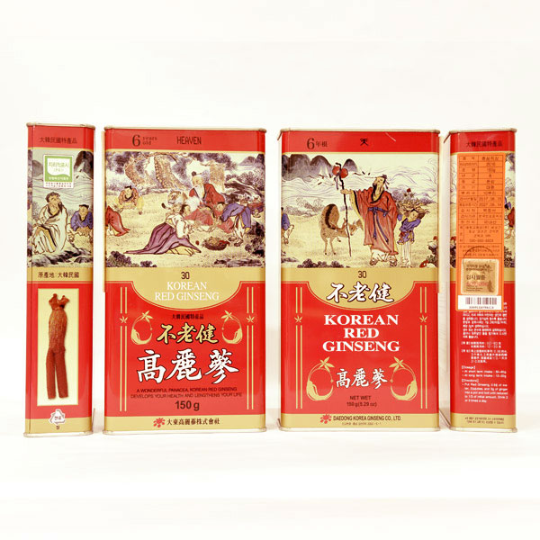 Hồng sâm củ khô một dòng sản phẩm chế biến từ sâm tươi Hàn quốc, với chất lượng vượt trội so với sâm tươi, là sản phẩm truyền thống và được xuất khẩu sang nhiều nước trên thế giới. Hồng sâm củ khô Daedong 150gr Heaven là dòng sản phẩm thuộc phân khúc cao cấp nhất, được chế biến từ sâm tươi lớp “Thiên sâm” rất thích hợp làm quà biếu sang trọng.