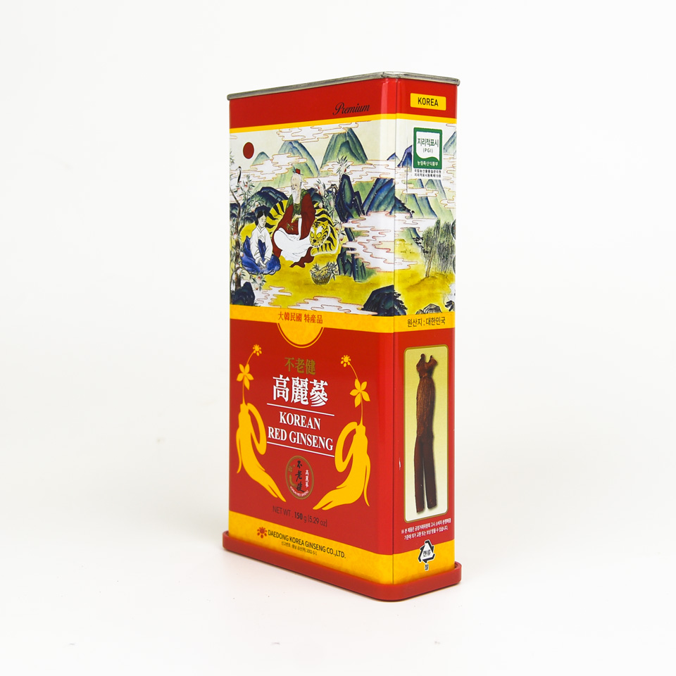 Hộp từ 16-25 củ sâm kích thước nhỏ được chế biến từ sâm tươi trồng tại Geumsan “vựa sâm chất lượng tốt nhất” Hàn quốc, các củ sâm được nén chặt hàm lượng nước dưới 15%, hình dáng đẹp hai chân rõ ràng. Được sản xuất bởi Daedong Korea Ginseng một trong những nhà sản xuất chế biến hồng sâm OEM hàng đầu hàn quốc, sản phẩm được sản xuất trên dây chuyền hiện đại đáp ứng nhiều tiêu chuẩn GAP, HACCP, FDI của Hàn quốc & Hoa Kỳ.